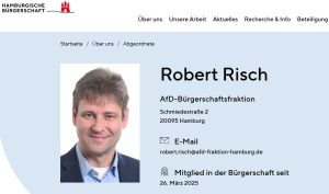 Robert Risch, som var valgt inn i Hamburgs bystyre for AfD. Skjermdump: Hamburgs bystyre