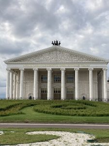 Det monumentale presidentpalasset (Ak Orda, som betyr «det hvite hus» på kasakhisk) er tegnet av selskapet til Behgjet Pacolli, kosovarsk forretningsmann og tidligere statsmann.