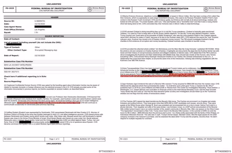 Et FBI-notat fra 2020, offentliggjort fredag som del av en større publisering av Epstein-relaterte dokumenter, og senere av en eller annen grunn avpublisert, omtaler det som beskrives som “utenlandsk påvirkning av amerikansk politikk”. Notatet ble skrevet som del av en etterforskning av mulig innenlandsk eller utenlandsk innblanding i USAs valgprosesser.