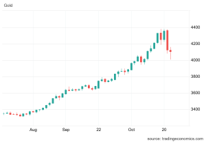 Onsdag falt gullfutures med ytterligere 0,3 prosent til 4 097 dollar per unse (omtrent 45 000 kroner), etter et dramatisk 5,7 prosents fall på tirsdag – det største daglige fallet siden 2013.