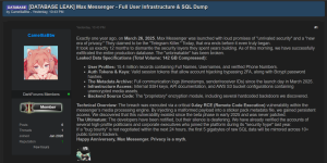 Innlegget, med tittelen «Max Messenger – Full User Infrastructure & SQL Dump», hevder at angriperen har fått full tilgang til tjenestens produksjonssystemer, nøyaktig ett år etter at appen ble lansert offentlig.