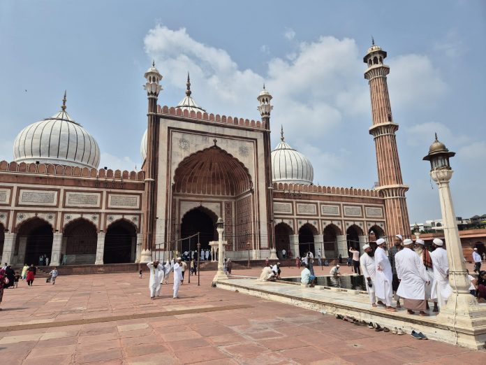 Middagssolen trenger knapt gjennom den tette disen som omgir Gamle Delhi. De trange smugene fylles av liv rundt den majestetiske Jama Masjid, den gamle moskeen som ble reist av mogulske keiseren Shah Jahan mellom 1644 og 1656. Han er også kjent for å ha oppført Taj Mahal til minne om sin avdøde hustru, Arjumand Bânu Begam. Det monumentale byggverket, med kupler i hvit marmor som skinner svakt under en grålig himmel og fire slanke minareter som rager 40 meter over bakken, dominerer bydelen og minner om en tid da islam hadde en fremtredende plass i India.