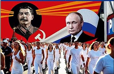 Andreas Heinemann-Grüder fremhever motivet om «hellig krig» i anti-ukrainsk propaganda og konkluderer med at dette ikke er en gjentakelse av 1900-tallets totalitære modeller, men snarere uttrykk for en «religiøs-fundamentalistisk» statsideologi. Fortellingen om forsvaret av Russland i forlengelsen av andre verdenskrig spiller en sentral rolle, og i et «ny-totalitært» samfunn håndheves dette som den eneste tillatte tolkningen. Viktigere enn en entydig merkelapp er erkjennelsen av at disse kvasi-religiøse forestillingene fungerer som en legitimering – ja, et krav – om permanent krig.