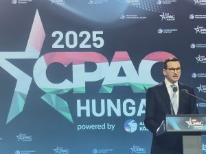 Polens tidligere statsminister Mateusz Morawiecki under CPAC-konferansen i Ungarn 29. mai 2025. Foto: Elekes Andor / Wikimedia Commons.