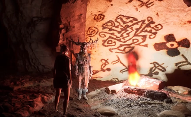 Spillerne kan bevege seg fritt i landskapet og møte to digitale figurer: en arkeolog og en kvinne fra steinalderen. Figurene er drevet av kunstig intelligens og har hver sin bakgrunnshistorie.