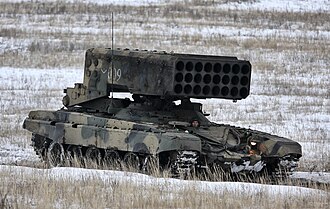 TOS-1A er blitt et av Russlands mest omtalte våpensystemer i krigen. Våpenet skyter termobariske raketter som kan dekke rundt 40.000 kvadratmeter – om lag 430.556 kvadratfot – i løpet av få sekunder.