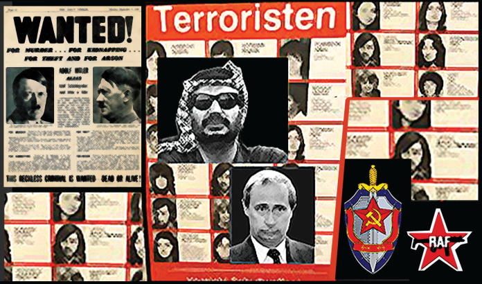 Med Lenin og etter han – Stalin – kom den ekstremt brutale prosesseringen, som KGB fulgte opp etter det som noe romantisk kalles «Den russiske revolusjon». Dette, inklusive terror satt i system, kostet flere titalls millioner russere livet i gigantiske arbeidsleire, Gulag, som i sin helhet ble administrert av det samme KGB som dagens leder i Moskva, Vladimir Putin, tilhørte. Og vi finner, egentlig ikke så uventet den samme Putin igjen i et avgrenset område av Øst-Tyskland da verdens mest notoriske terrorister – inklusive nynazister – roterer innenfor nøyaktig det samme lille området av Europa fra slutten av 1970-årene til 1990. De to dominerende PLO-fraksjonene, Fatah og PFLP preget nevnte landskap, sammen med den tyske terrorgruppen, Røde Arme-fraksjonen (RAF), også kalt Baader-Meinhof-banden.