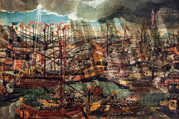 Da Victor Hugo skrev dette berømte verset i La Légende des Siècles (Lengenden om århundrene), beskrev han ikke Lepanto, men Waterloo. Likevel fanger formuleringen presist den geopolitiske virkningen av slaget som 7. oktober 1571, ved utløpet av Patrasbukten, stilte den osmanske flåten opp mot en koalisjon av Middelhavets fremste kristne makter.