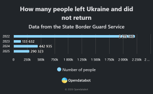 I løpet av de fire årene med fullskala krig har 3,1 millioner ukrainere som forlot landet ikke offisielt returnert til Ukraina. Til tross for en eskalerende bombekampanje, mange strømbrudd og en ny lov som tillater menn i alderen 18–22 år å forlate landet, var det bare 290 300 ukrainere (inkludert ca. 60 000 unge menn) som dro til utlandet i 2025 som ikke returnerte. Dette betydde en 1,5 ganger lavere utvandring i 2025 enn i 2024.