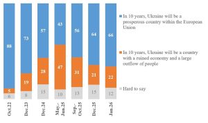 Dette resultatet gjenspeiler et tidligere funn fra komparativ forskning på kriger, nemlig at statsterroristiske luftangrep mot sivile er et uegnet middel for angriperlandene til å knekke en nasjon som forsvarer seg. Ukrainernes optimisme med hensyn til landets fremtid har i begynnelsen av 2026 ikke avtatt, men tvert imot vokst sammenlignet med 2024–2025. I hvilken grad er denne ukrainske holdningen et uttrykk for påtvunget eufori eller en refleksjon av Ukrainas fortsatte motstandskraft, ressurser og potensial i den pågående krigen?