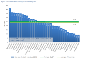 Ved inngangen til 2026 varierte strømprisene for husholdninger fra 8,8 eurocent per kilowattime i Kyiv til 38,5 eurocent i Bern. EU-gjennomsnittet lå på 25,8 eurocent.