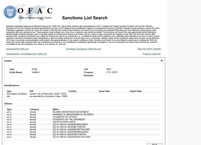 Ifølge OFAC er dokumentasjon for dette hentet fra Hamas-kontorer etter angrepene 7. oktober 2023.